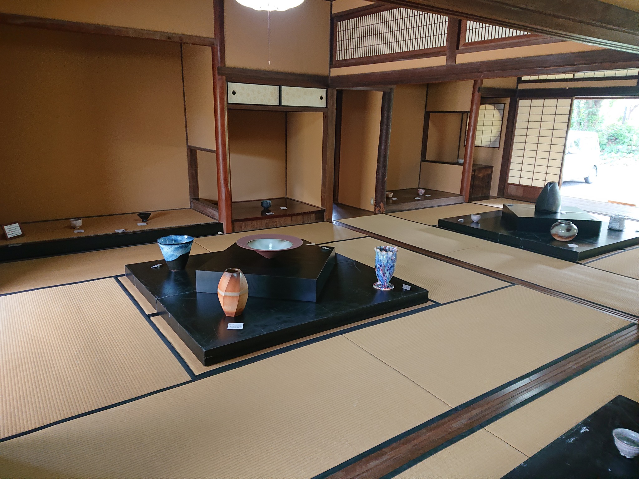会場には、伝統的な萩焼から、様々な技法をこらした個性あふれる作品まで多様な作品が展示され、会場となった歴史的建造物と共に来場者の目を楽しませていました。