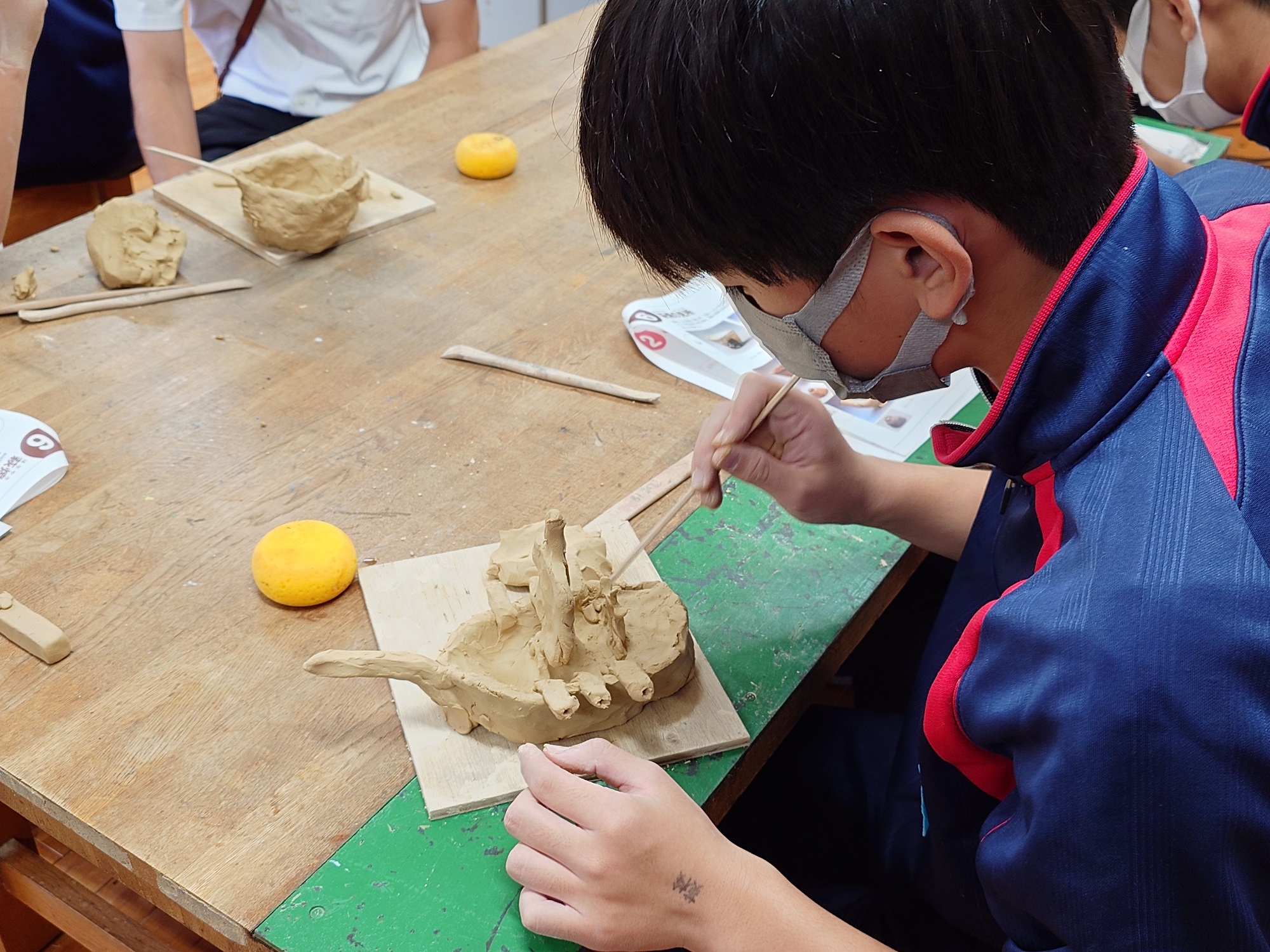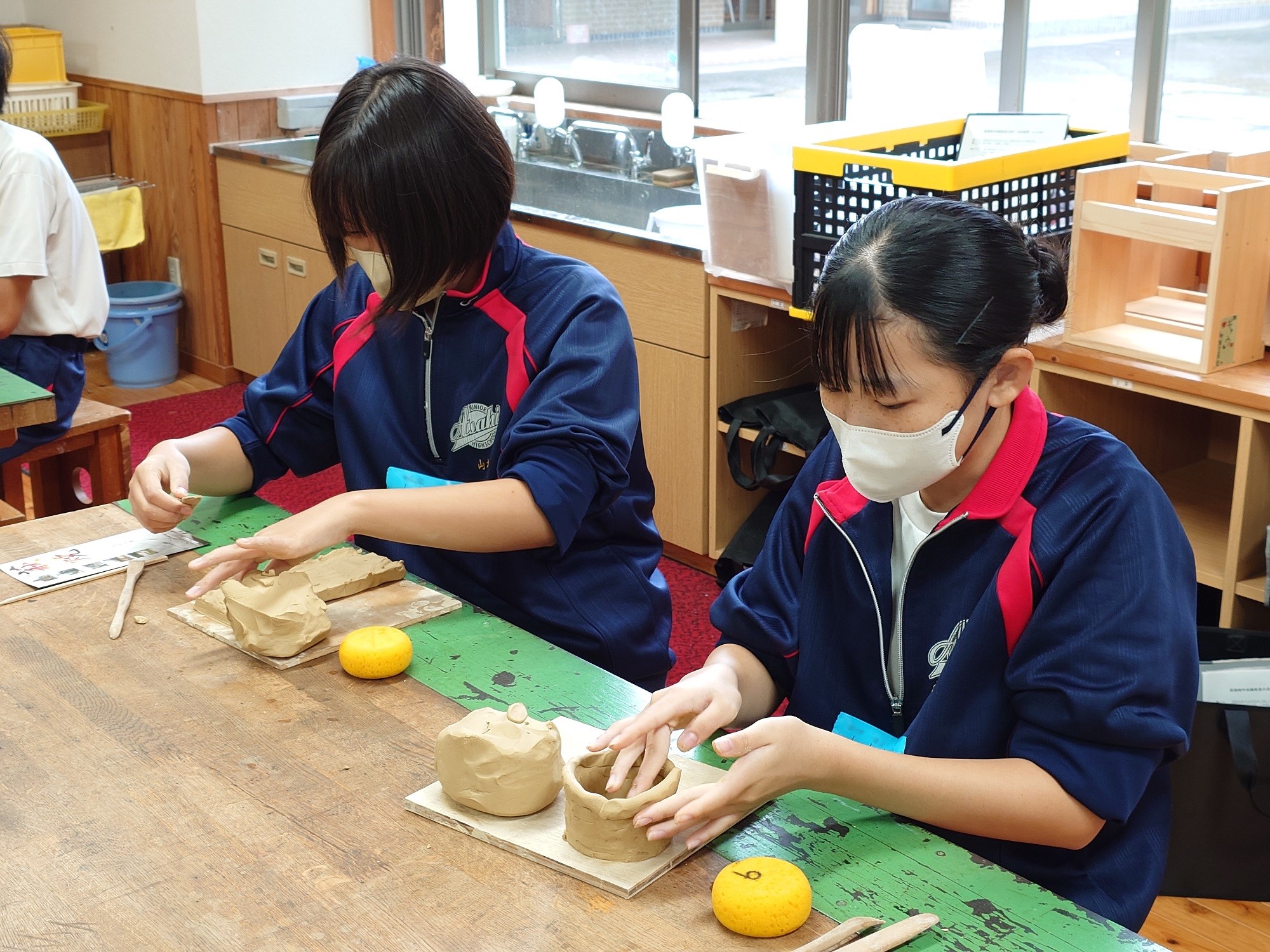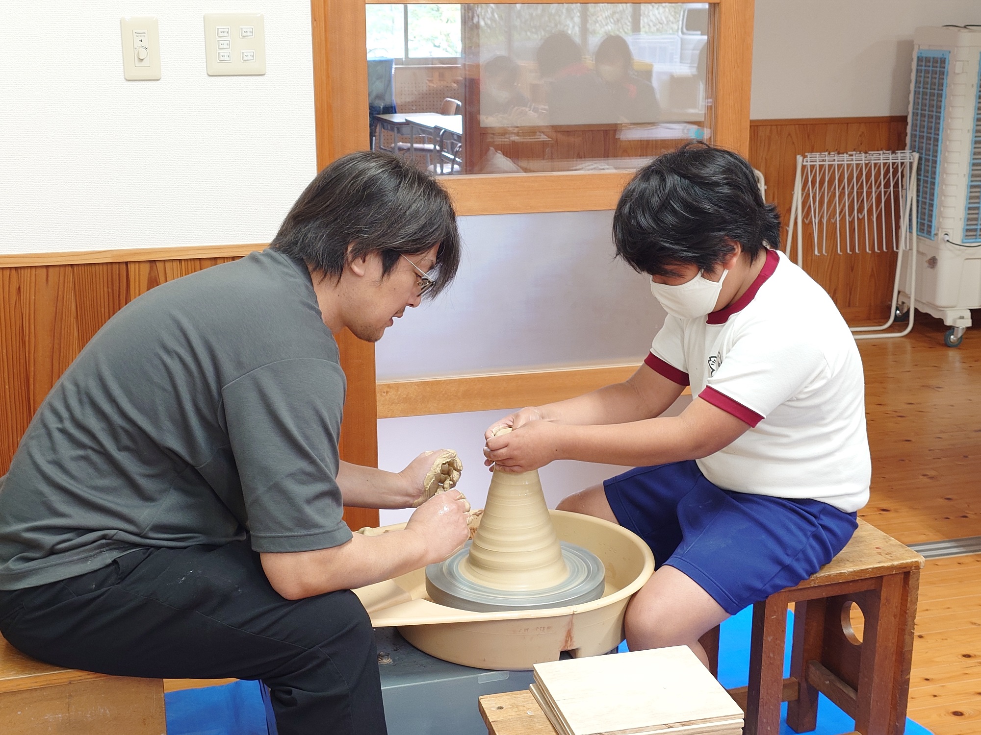 10/8(火) 明木小・旭中学校で萩焼制作体験教室を行いました